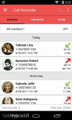 Call Recorder Pro نرم افزاری برای ضبط تماس های دریافتی و خروجی می باشد که شامل سه قیمت علاقمندی ها ، ضبط شده ها و فیلتر جستجو می باشد.