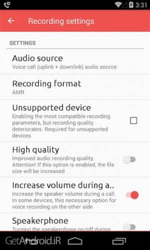 1. برخی از دستگاه ها از ضبط مکالمات در طول تماس تلفنی به دلایل مختلف پشتیبانی نمی کنند. اما در بسیاری موارد، با کاهش کیفیت ضبط، می توانید با محدود کردن گزینه Unsupported device در تنظیمات برنامه، این محدودیت را از بین ببرید.