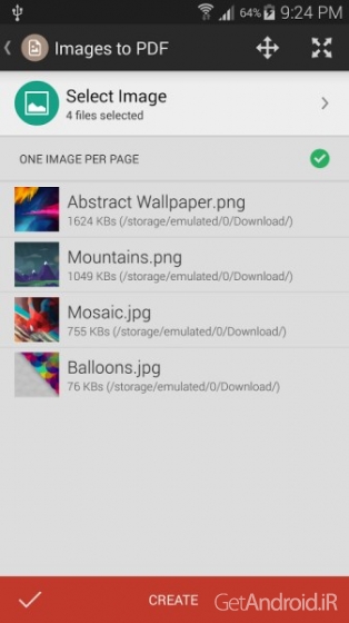 • IMAGES TO PDF – ایجاد یک PDF از تصاویر. به گالری بروید، تصاویر را انتخاب کنید و با “Images to PDF” به اشتراک بگذارید.