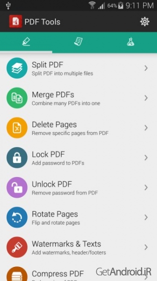 یک برنامه اندروید عالی با ۱۴ ابزار کاربردی در زمینه ی کار برروی فایل های پی دی اف می باشد که مخصوص دستگاه های اندرویدی در دو نسخه ی Lite و Pro عرضه شده و ما امروز قصد معرفی نسخه ی Pro و پولی ان را داریم. اگر از کاربرانی هستید که سر و کارتان با فایل های پی دی اف می باشد و دوست دارید یکی از بهترین ابزارهای کار برروی فایل های پی دی اف را در دستگاه اندرویدی خود داشته باشید بدون شک ابزار فوق بهترین است به گونه ای که با آن قادر خواهید بود به آسانی فایل های پی دی اف را بسازید، فایل های پی دی اف را به اسناد مختلف تبدیل کنید، صفحات دلخواه را از فایل های پی دی اف حذف نمایید و تجربه ای متفاوت از برنامه های کار با پی دی اف را در موبایل خود به ارمغان بیاورید.برخی از امکانات و قابلیت های برنامه PDF Tools اندروید :