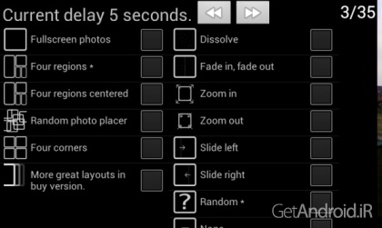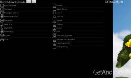 * Digital Photo Frame عکس ها را به صورت تصادفی در پوشه نمایش می دهد و آنها را با توجه به طرح انتخابی شما مرتب می کند.