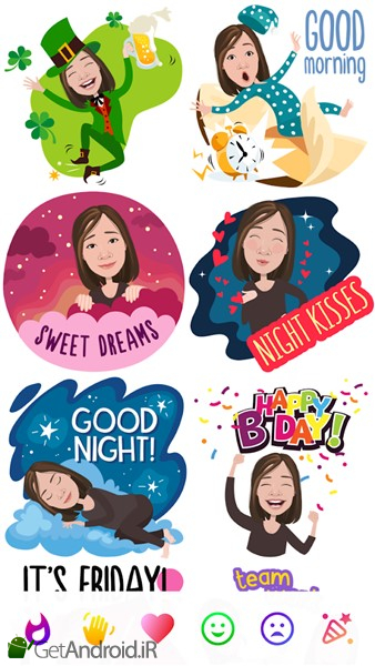 این برنامه تبدیل عکس به ایموجی همچنین شامل یک کتابخانه از استیکرها و ایموجی های از پیش ساخته شده است که می توانید بلافاصله از آنها استفاده کنید. این کتابخانه دائماً با محتوای جدید به روز می شود، بنابراین همیشه می توانید برچسب ها و شکلک های جدیدی را برای استفاده در مکالمات خود پیدا کنید.