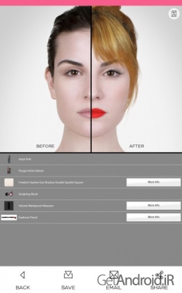 پیشرفته ترین برنامه موبایل حال حاضر جهان برای تغییر ظاهر به صورت مجازی می باشد که نسخه اندروید آن نیز در دسترس قرار گرفت! Makeup Premium برنامه ای است که تغییر مجازی در ظاهر را در یک سطح کاملا جدید انجام می دهد. این تغییر ظاهر(makeover) با لوازم آرایشی، شبیه سازی آرایش، و افکت های دگرگونی چهره انجام می شود. شما می توانید به معنای واقعی کلمه هزاران رنگ لوازم آرایشی و سایه را در ثانیه امتحان کنید! این همه چیز نیست! شما همچنین می توانید بیش از 40 سبک مشهور مدل مو و لنزهای تماسی رنگی مختلف را امتحان و لوازم جانبی مانند عینک آفتابی، گوشواره، جواهرات، و خیلی بیشتر را اضافه کنید. ابتدا یک عکس بگیرید یا عکسی را از گالری انتخاب کنید. سپس، محصولات آرایشی مورد علاقه خود را از پایگاه داده بزرگ برنامه انتخاب کنید. هنگامی که ترکیب رنگ مناسب خود را پیدا کرده اید، آن را در گالری خود ذخیره کنید و با دوستان خود به اشتراک بگذارید! شما حتی می توانید از آن به عنوان یک عکس جدید در شبکه های اجتماعی مورد علاقه خود استفاده کنید. محصولات آرایشی که شما امتحان کردید، برای راحتی شما ذخیره خواهند شد. این نرم افزار مانند یک هنرمند آرایش مجازی در جیب شما خواهد بود!برخی از امکانات و قابلیت های اپلیکیشن Makeup Premium اندروید :