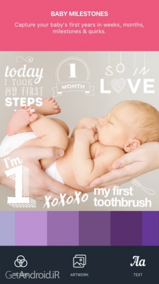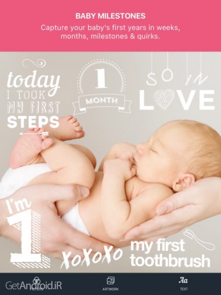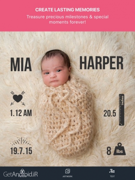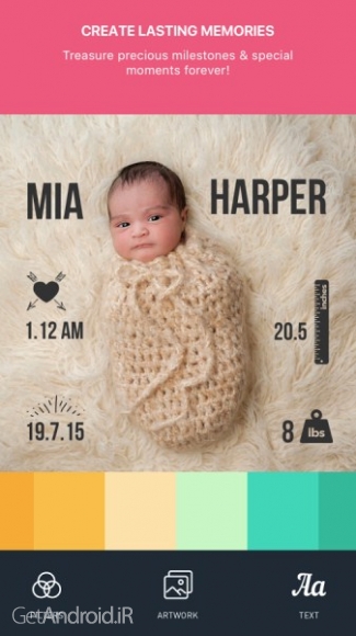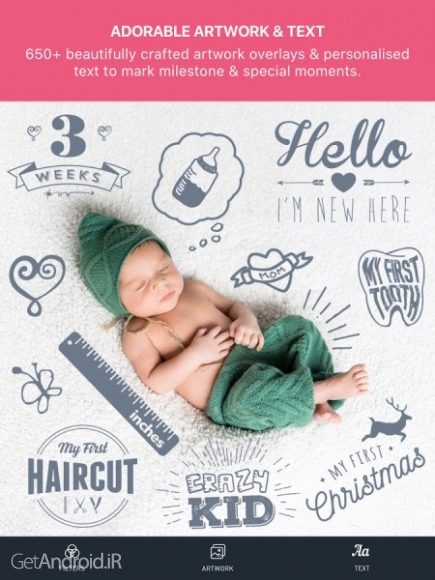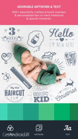 ✤ قابلیت افزودن نام نوزادان با فونت های متنوع و جذاب یا نوشتن تاریخ بر روی عکس ها