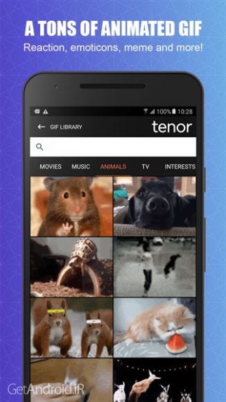 · تصاویر GIF را در کتابخانه TENOR انتخاب کنید - یکی از بزرگترین ارائه دهندگان تصویر GIF در حال حاضر.