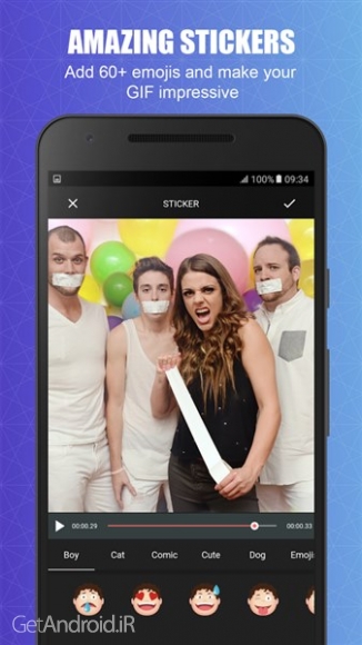 · اضافه کردن emojis، متن و هدیه به هر قاب از تصاویر GIF.
