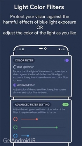 از چشم شما در برابر گوشی محافظت می کند. با این برنامه می توانید روشنایی صفحه نمایش خود را در تاریکی کاهش دهید. همچنین می توانید نور آبی را که سبب ایجاد فشار چشم، ناتوانی در خواب و سردرد در محیط های تاریک و یا در شب می شود، فیلتر کنید.برخی از ویژگی های برنامه Night Owl - Screen Dimmer & Night Mode اندروید :