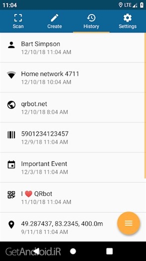 توسط نرم افزار بارکدخوان QRbot میتوانید انواع کدهای QR و بارکد را اسکن کنید. شما قادرهستید بارکدهای حاوی اطلاعاتی مانند : آدرس های اینترنتی وب سایت ها (URL) ، اطلاعات تماس (MeCard ، کارت ویزیت ، vcf) • رویدادهای تقویم ، اطلاعات اتصال به WiFi ، مکان های جغرافیایی ، اطلاعات تماس تلفنی ، ایمیل ، اس ام اس و MATMSG را توسط این برنامه براحتی اسکن کنید. سپس شما میتوانید این اطلاعات را با دیگران به اشتراک بگذارید. از یکی از بهترین برنامه های بارکد خوان QR موجود برای تلفن های هوشمند و تبلت ها با Android 6.0 یا بالاتر لذت ببرید.