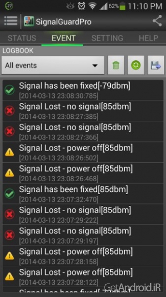 را از دست ندهید . با داشتن و نصب این نرم افزار بر روی دستگاه اندرویدیتان کیفیت سیگنال ها را بهبود ببخشید و با دوستان خود ارتباط برقرار کنید . به عنوان مثال هنگام ورود به مترو و یا زیر زمین اگر با مشکل مواجه می شوید این برنامه اندروید می تواند مشکل شما را تا حد قابل توجهی حل کند . Signal Guard Pro کیفیت سیگنال و شرایط کارکرد تلفن همراه شما را به صورت لحظه ای نظارت می کند. این برنامه در زمانی که اختلالات سیگنال رخ می دهد، از قبل با زنگ، لرزش و LED به شما هشدار می دهد؛ مانند ورود به مکان هایی مانند مترو، زیرزمین، اتاق کامپیوتر و تونل ها و یا تنظیمات نادرست باند. این برنامه می تواند با توجه به تنظیمات پارامتر سیگنال، شبکه سیگنال را ظرف 6 ثانیه به طور خودکار بازگردانی کند. کل فرآیند بازیابی در دیتابیسی که بعد قابل بررسی خواهد بود ذخیره خواهد شد. و در نهایت لازم به ذکر است که این برنامه به صورت کامل با زبان های انگلیسی و فرانسوی سازگاری دارد .1. امکان قفل کردن باند: