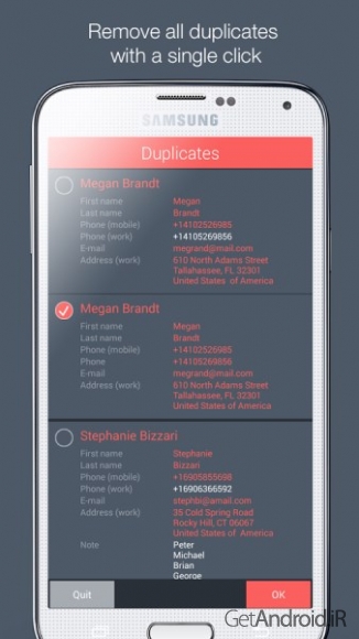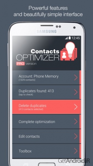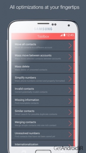 برخی از ویژگی های برنامه Contacts Optimizer PRO اندروید: