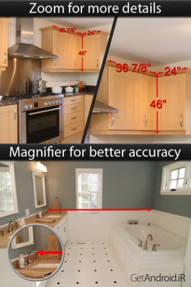 بهترین و ساده ترین راه برای ذخیره مقیاس و اندازه اشیاء در عکس های شما در اندروید می باشد. این برنامه توسط بسیاری از مرجع مجلات، سایت ها و وبلاگ ها در سراسر جهان مانند Architectural Digest, Tuaw.com, This Old House, AppOfTheDay.com, AppSafari.com, AppGefahren.de و … توصیه شده است.برخی از ویژگی ها و امکانات برنامه Photo Measures اندروید :