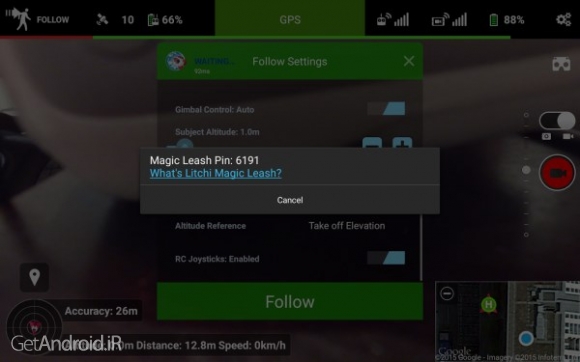 - گزینه ی استفاده از دستگاه موبایل خارجی به عنوان هدف Follow Me با استفاده از Litchi Magic Leash
