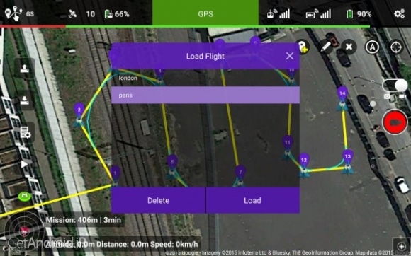 صورت عملیات پروازی و ماموریتهای Waypoint(مكان های از پیش تعیین شده) در حافظه ی داخلی دستگاه موبایل ذخیره خواهد شد.