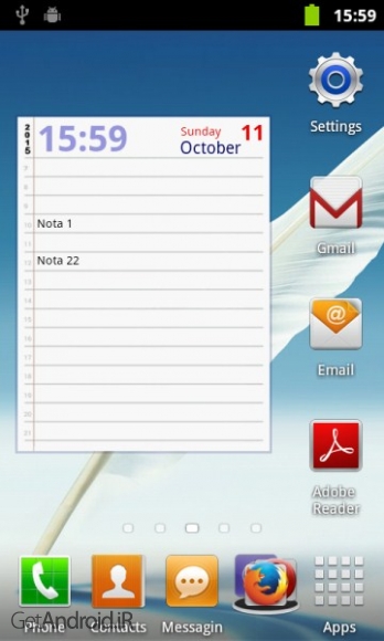 - ویجت موجود در صفحه اصلی