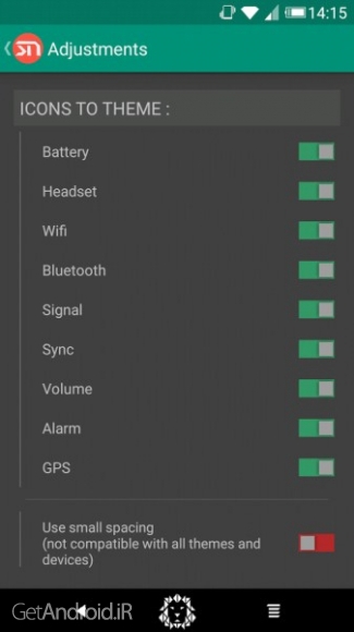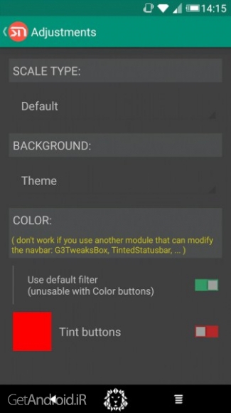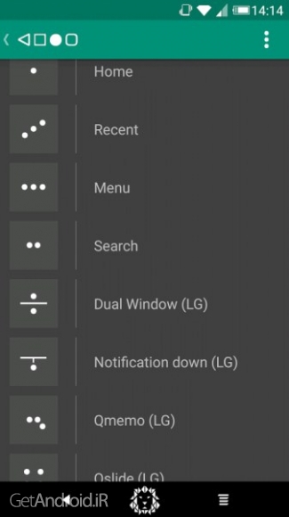 - درخواست یک تم شخصی با تصاویر خود بر روی: back، back-ime، خانه، اخیر، منو، جستجو، برجسته، پس زمینه (در حالت شفاف تنها)، qmemo (LG)، قابلیت Qslide (LG)، پنجره دوآل (LG)، اطلاع رسانی بالا / پایین (LG).
