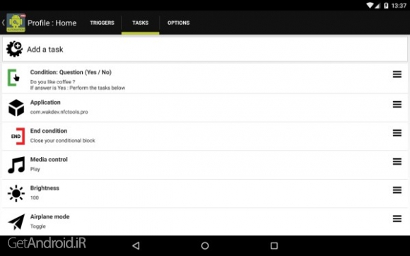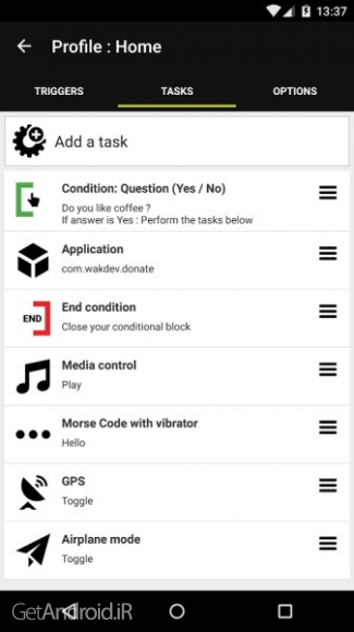 به شماره این امکان را می دهد فعالیت ها و کارهایی را اجرا کنید که قبلا یکبار تکرار شده اند. استفاده ساده از این برنامه زندگی شما را آسانتر می سازد. پروفایل خودتان را بسازید، کارهایتان را اضافه کنید. همین...آموزش دانلود Droid Automation - Pro Edition: