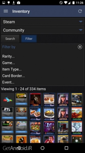 - وارد سایت گت اندروید شده و از بخش جستجو عبارت "Steam" را تایپ کنید