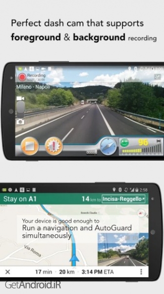 موبایل هوشمند تان با برنامه AutoGuard Dash Cam - Blackbox 6.4.4059 [Pro] مثل خودتان هوشمندانه کار خواهد کرد. بهترین اپ Blackbox که تجارب خارق العاده ای را برایتان ارائه خواهد داد. این اپ فاکتور های مختلفی از ویدئو، شتاب، طول و عرض و سرعت را ضبط می کند. ویدئوهای ضبط شده را می توان محدود کرد تا فضای بیشتری در موبایل تان ذخیره شود. زمانیکه موبایل تان پر شد، بطور خودکار فایل های قدیمی ویدئوها را حذف می کند. همچنین می توانید این اپ را طوری تنظیم کنید که بطور خودکار زمانیکه بر روی دستگاه نصب کن خودرو قرار گرفت شروع بکار کند و در بگراند اجرا شود. می توانید رزلوشن تصویری، نرخ بیت، حساسیت شتاب، و زمان بروز رسانی GPS را تنظیم کنید. لازم به ذکر است که این برنامه از زبانهای انگلیسی، آلمانی، فرانسه، چینی، ژاپنی، کره ای، پرتقالی، روسی، هلندی، تایوانی، لیتوانیایی، لهستانی، رومانیایی، بلغاری، و چک اسلواکی پشتیبانی میکند.