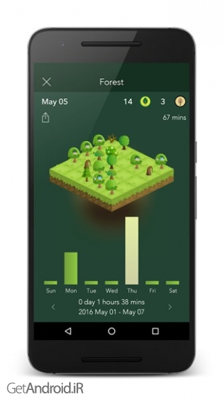 یک برنامه جالب و کاربردی برای ترک اعتیاد به گوشی موبایل اندروید شماست . آيا تا به حال پيش آمده به تلفن خود احساس اعتياد پيدا كرده و نتوانيد از آن دل بكنيد!؟ اين برنامه راه حل جالبي براي اين مسئله دارد. شما يك دانه را در جنگلي ميكاريد و طي ٣٠ دقيقه اين دانه رشد كرده و به تدريج به يك درخت تبديل خواهد شد. با اين شرط كه شما نميتوانيد بازي را رها كرده و سراغ برنامه هاي ديگر( براي چك كردن فيسبوك يا بازي كردن،...) برويد كه در اين صورت درخت شما رو به سوي نابودي خواهد رفت... اين مكانيسم جالب با احساس موفقيت و مسئوليت پذيري كه به كاربر ميدهد بدون هيچ دردسري او را به دور از تلفن نگه خواهد داشت.برخی از ویژگی های برنامه Forest: Stay focused اندروید :
