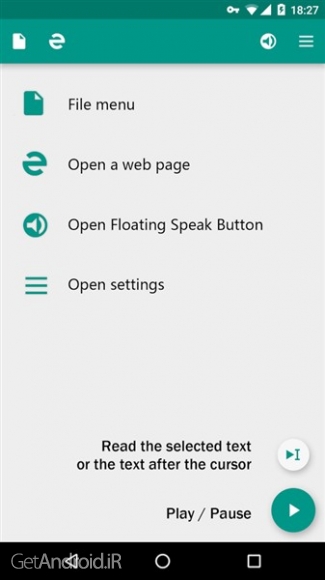 - در دستگاههای Android 6+، میتوانید متنی را از برنامههای دیگر انتخاب کنید، سپس روی گزینه «Speak» از منوی انتخاب متن ضربه بزنید تا متن انتخابی خود را بیان کنید (* برنامههای شخص ثالث را ملزم به استفاده از اجزای استاندارد سیستم کنید).