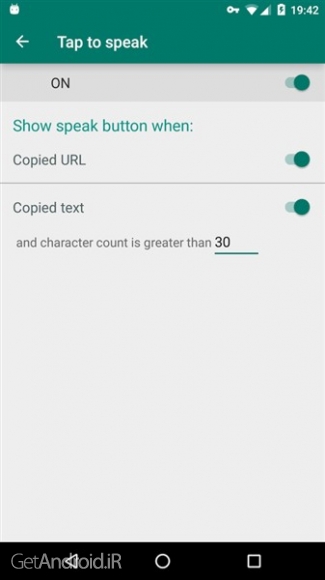 - Copy-to-speak: متن یا URL را از برنامه های دیگر کپی کنید، سپس روی دکمه Floating speaking T2S ضربه بزنید تا محتوای کپی شده را بیان کنید. می توانید این ویژگی را در تنظیمات برنامه روشن کنید.