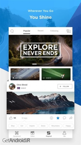 برای دانلود DJI GO 4--For drones since P4 و نصب آن از سایت گت اندروید، مراحل زیر را دنبال کنید: