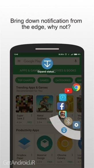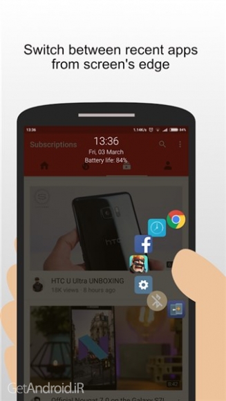 • تعویض برنامه های اخیر: برنامه های اخیر خود را در نوار کناری دایره ای شناور مرتب کنید. با یک ضربه تند از ناحیه لبه صفحه ماشه بین آنها جابه جا شوید.