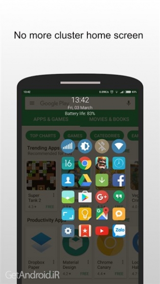 - سفارشی سازی اندازه آیکون، انیمیشن، رنگ پس زمینه، بازخورد لمسی هر میانبر