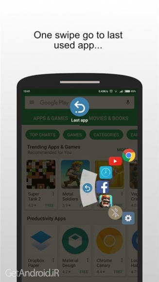 • چندوظیفه ای سریع: تنها با یک کشیدن انگشت به برنامه های اخیر یا آخرین برنامه استفاده شده بروید. هیچ راه سریعتری برای انجام آن وجود ندارد.