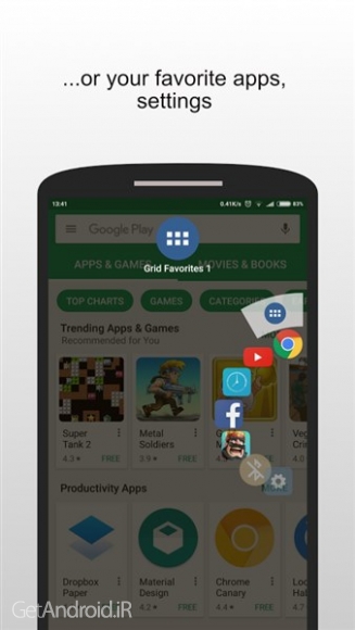 • Grid Favorites: یک پانل جانبی که در آن می توانید برنامه های مورد علاقه، میانبرها، تنظیمات سریع، مخاطبین را برای دسترسی از هر صفحه ای قرار دهید.