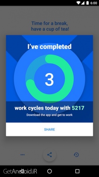 با پیام های دلگرم کننده و تن ساعت کوکی سرزنده این اپ به آرامی شما را به انجام کارهایتان هدایت می کند و به شما این امکان را می دهد تعداد سیکلی که قادر بودید در طول یک روز را کامل کنید را به اشتراک بگذارید.