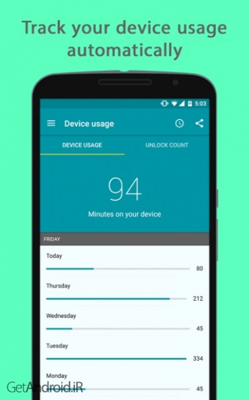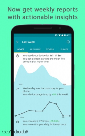 • زمان کاربرد موبایل تان و تعداد باز شدن قفل را بطور خودکار مشاهده خواهید کرد.