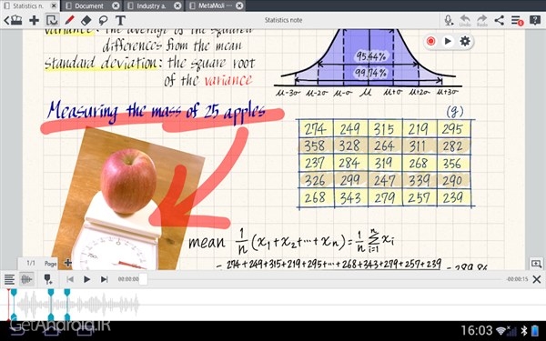 یک یادداشت صوتی و دفترچه یادداشت دیجیتال برای زندگی شماست. ایده های خود را در هر زمان با ضبط صدا، تشخیص دست خط پیشرفته به متن تبدیل کنید. از این نرم افزار به عنوان یک طرح اسکنر با رزولوشن بالا با رنگ پالت رنگی، رنگ های مداد رنگی و قلم های خوشنویسی پیشرفته استفاده کنید. توجه توجه MetaMoJi یک تخته سفید مجازی برای طراحی، حاشیه نویسی، دفتر خاطرات و یا ترکیب دیجیتالی از یادداشت ها و صدا است. MetaMoJi تنها برنامه یادداشت برداری موجود در تمام سیستم عامل های تلفن همراه - iOS، Android و ویندوز است.برخی از ویژگی های برنامه MetaMoJi Note اندروید :