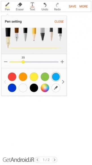 ✤ نوشتن و نقاشی با استفاده از S Pen یا انگشت، با قلم و سبک های مختلف از پیش تعریف شده