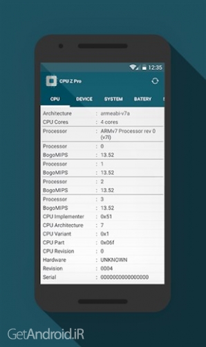 برنامه ای کاربردی است که اطلاعات مربوط به دستگاه اندرویدی شما را نمایش میدهد که توسط ان میتوانید اطلاعات کامل و دقیقی در مورد گوشی خود از جمله نوع پردازنده یا cpu گوشی خود را بفهمید.ویژگی های برنامه CPU Z PRO اندروید :