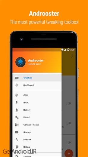 یک جعبه ابزار برای تنظیمات است که با آخرین امکانات و قابلیت ها ساخته شده است و همیشه عملکرد خود را حفظ می کند و عمر باتری را تا 100٪ افزایش می دهد. این یکی از کامل ترین، سریع ترین و ایمن ترین برنامه ها می باشد و به شما مشخصات کاملی از مدت زمان باتری، سرعت دستگاه و سفارشی سازی سیستم تان را ارائه می دهد. همچنین با قدرتمندترین تنظیمات، یک سرعت فوق االعاده را برای شما به وجود می آورد. شما می توانید از طریق تنظیمات UI ها و ویژگی هایی که به شما اجازه سفاشی سازی می دهد. دکمه های سریع، نوار ابزار، نوار جهت یابی و نوار وضعیت را فعال کنید و تمام رنگ ها را تغییر دهید و بین تم های تیره و روشن سوئیچ کنید. منو را ویرایش کنید و Androoster را با یک رمز عبور و یا PIN قفل کنید و در نهایت می توانید انیمیشن ها را نیز سفارشی کنید. در مورد امنیت این برنامه از رمزنگاری داخلی AES256 برای حفظ فایل های پیکربندی شده داخلی استفاده می کند.Androoster چیست؟