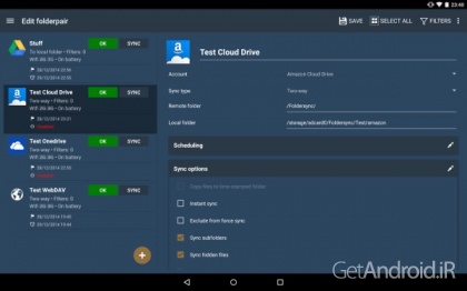 برخی از ویژگی های برنامه FolderSync اندروید :