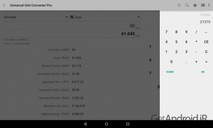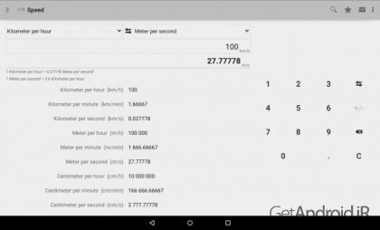 یک ابزار تبدیل کننده قدرتمند، تنومند و زیبا است. بیش از 650 واحد از 35 دسته مختلف در این نرم افزار پشتیبانی می شوند. شما با یک برنامه جالب برای تبدیل انواع واحد ها به یک دیگر روبرو هستید که با استفاده از این برنامه دیگر نیازی به ماشین حساب های بزرگ و مهندسی ندارید. با این برنامه می توانید انواع واحد ها همانند، طول، سرعت، شتاب و ... را به یک دیگر تبدیل کنید. دما (سانتیگراد، فارنهایت، کلوین، و ...)، طول (کیلومتر، مایل، متر، پا، و ...)، جرم / وزن (کیلوگرم، پوند، اونس، تن و ...)، سرعت (کیلومتر / ساعت، مایل در ساعت، گره، و ...)، مساحت (کیلومتر مربع، مایل مربع، هکتار و ...)، فشار (بر کیلو پاسکال، بار، PSI، و ...)، قدرت (وات، کیلو وات، اسب بخار، و ...)، انرژی (ژول، کالری، BTU، و ...)، مدت زمان (سال، ماه، روز، ساعت، دوم، و ...)، مصرف سوخت (مایل در هر گالن، لیتر در هر ۱۰۰km، و ... ) و ذخیره سازی دیجیتال (بیت، بایت، مگابایت، گیگابایت و ...) از قابلیت های این برنامه می باشد.برخی از ویژگی های برنامه Universal Unit Converter Pro اندروید :