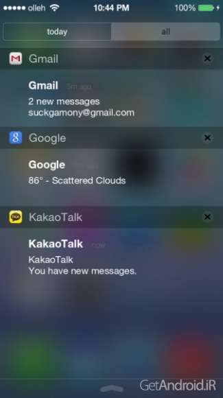 یک جایگزین نوار وضعیت است که نوار وضعیت شفاف و شمارشگر اطلاعیه اضافی را هنگامی که با iLauncher استفاده شود ارائه می دهد. این اپلیکیشن به گوشی شما شکل و شمایل جدیدی می بخشد. اگر از ظاهر قسمت های مختلف گوشی اندرویدی خود خسته شده اید، می توانید برنامه iNoty را نصب نمایید. این برنامه که به تازگی ارائه شده است ظاهر گوشی شما را شبیه سیستم عامل ios7 می نماید. با نصب برنامه فوق می توانید همچنین در قسمت نوار طالاع رسانی تغییراتی ایجاد کنید. برای استفاده از برنامه فوق باید برنامه iLauncher را نصب و اجرا نمایید. برنامه فوق فقط بر روی گوشی های هوشمند اندروید قابل نصب و اجرا می باشد و فعلا از تبلت ها پشیتبانی نمی کند. با استفاده از تنظیماتی که برنامه در اختیار شما قرار می دهد می توانید محیط گوشی خود را کاملا سفارشی سازی کنید.آموزش دانلود iNoty: