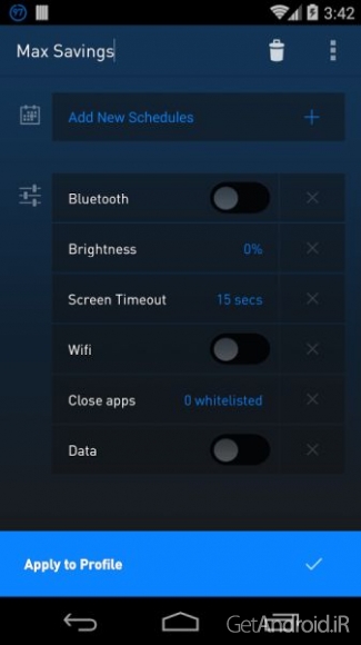 همانگونه که از نامش هم پیداست اپلیکیشنی دیگر برای مدیریت و کاهش مصرف باتری در گوشیها و تبلتهای اندرویدی است که چندی پیش توسط توسعهدهنده ای بنام Netroken در گوگل پلی منتشر شد. پروفایلهای موجود در این نرم افزار به سادگی هر چه تمامتر کارکرد باتری را بهبود بخشیده و شارژدهی بیشتری را برای دستگاه اندرویدی شما فراهم میکند. علاوه بر این امکان ایجاد پروفایلهای دلخواه بر اساس سرویسهای گوناگون نیز وجود دارد که میتواند شما را در رسیدن به نتایج مطلوبتر یاری کند. قابلیت جالب دیگری که باید به آن اشاره کنیم نمایش سطح باتری در یک تایم لاین زیبا و روند مصرف کنونی است که میتواند در نوع خود کاربردی و جالب توجه باشد.کاربران گرامی توجه داشته باشید :