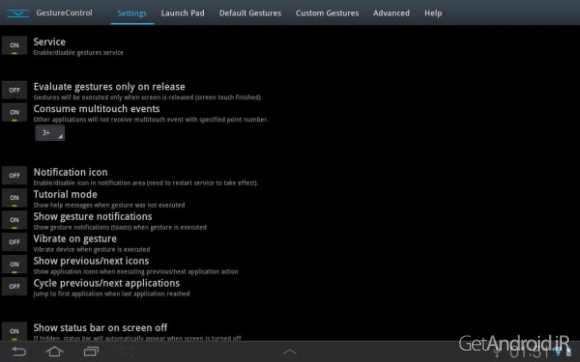 با استفاده از برنامه GMD GestureControl ★ root 10.1.9 release می توانید به وسیله مولتی تاچ بسیاری از قسمت های گوشی خود را مدیریت کنید و مراجعه سریعتری به برنامه ها داشته باشید. این برنامه حرکات انگشتان شما را آنالیز کرده و طبق متدهای تعیین شده دستور مورد نظر را برای شما انجام میدهد. به نوعی می توانید برای ورود به یک برنامه یک تاچ میانبر بسازید که با لمس همزمان به طور مثال دو انگشت به بالا برنامه دلخواه باز شود. از ویژگی های این برنامه می توان به دارا بودن 9 حرکت پیش فرض و محیطی ساده و کاربر پسند شاره کرد. ممکن است دیده باشید که در آی پد می توان با حرکات چند انگشت کارهای مختلفی همچون اجرا کردن برنامه بعدی و قبلی، خارج شدن از برنامه و … کرد، بدون آنکه دکمه ای فشار دهید. این برنامه چنین قابلیت هایی را به تبلت ها و گوشی های اندرویدی اضافه می کند. این برنامه برای کسانی که از نوار وضعیت اندروید خسته شده اند و می خواهند دستگاه خود را با حرکات کنترل کنند جالب ، کاربردی و ارزشمند خواهد بود. فراموش نکنید که برای استفاده از این برنامه ، روت بودن دستگاه اندرویدی شما الزامیست .