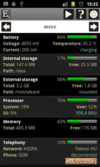 ✤ نمایش اطلاعات سخت افزاری: باتری، ذخیره سازی داخلی/خارجی، پردازنده، حافظه، تلفن، WiFi، بلوتوث، NFC ، محل، صفحه نمایش، صدا، حالت هواپیما، دوربین، دوربین فیلمبرداری، دستگاه های ورودی، USB