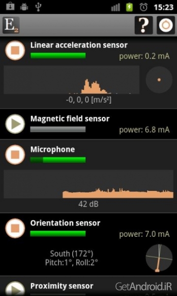 ✤ نمایش اطلاعات سنسور، روشن/خاموش کردن سنسورها، میکروفون