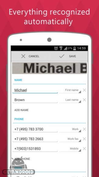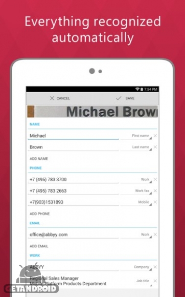 ✓ تشخیص بی نظیر داده ها و سرعت مبتنی بر تکنولوژی ABBYY Mobile OCR، رفع نیاز به اصلاح یا re-key کردن داده های کارت های تجاری، ایجاد مخاطبین جدید به صورت آسان و اتوماتیک.