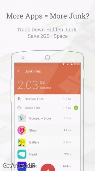 آزاد کردن فضا و بهبود عملکرد هوشمندانه ، اسکن فایل های اضافی و بدرد نخور مانند فایل های باقی مانده، کش (مانند عکس ها و فیلم های ذخیره شده تلگرام که پس از مشاهده بطور اتوماتیک در کش ذخیره میشوند) ، فایل های موقتی، برنامه های apk منسوخ و دیگر فایل های بزرگ است.