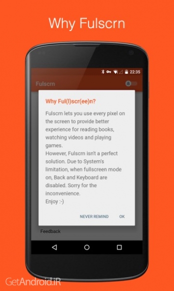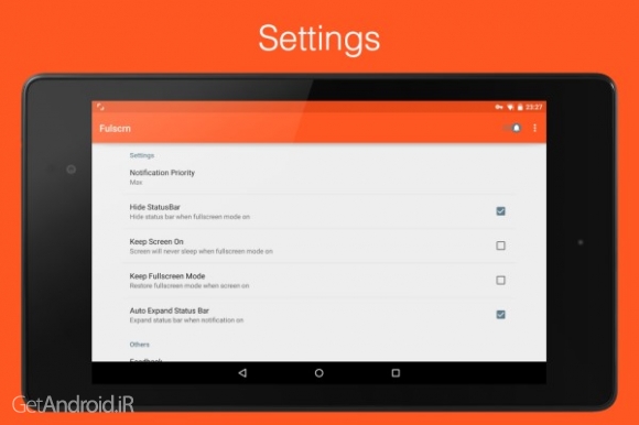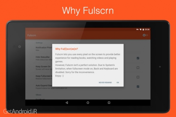 برخی از ویژگی های برنامه Fulscrn اندروید :