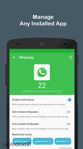 یک برنامه کاربردی برای غیرفعال سازی اعلان های صوتی است. احتمالا بارها و بارها برایتان پیش آمده که در حال گوش کردن یک موزیک زیبا با هندزفری خود باشید و به یکباره پیامکی دریافت کرده اید و یا به دلیل دریافت پیامی از شبکه های اجتماعی یا مسنجر ها ، آن اطلاعیه به صورت صوتی به شما اطلاع داده شده است که باعث ایجاد مزاحمت در حین گوش کردن آهنگ برای شما شده است . اگر میخواهید این اعلان های صوتی را به صورت هوشمند غیرفعال کنید ، بهترین راه استفاده از اپلیکیشن Audify Notification Reader می باشد.برخی از ویژگی های برنامه Audify Notification Reader اندروید :