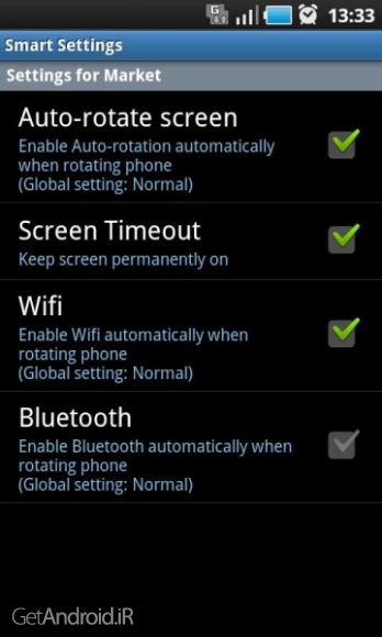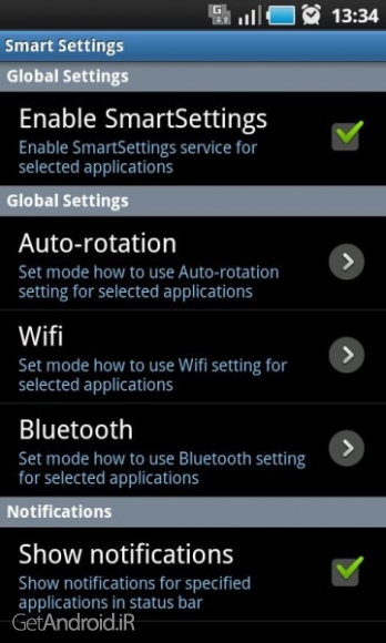 توسط برنامه Smart Settings PRO v1.4.5 قادر هستید تا تنظیمات سیستمی مختلفی را بر روی برنامه های انتخاب شده اعمال کنید. سیستمهای تنظیم مبتنی بر نرم افزار که اجازه می دهد به طور خودکار تنظیمات سیستم برای برنامه های کاربردی انتخاب شده را تغییر دهید. این اپلیکیشن به شما اجازه میدهد ویژگی هایی مانند: چرخش خودکار ، روشن ماندن دائمی صفحه نمایش ، وای فای و بلوتوث را از هر برنامه نصب شده به طور خودکار فعال یا غیر فعال کنید. هر بخش تنظیمات آن بطور انفرادی برای هر اپ نصب شده برروی موبایل تان قابل تنظیم است و زمانیکه اپ انتخاب شده مخفی میشود، فعال می شود. تازمانیکه نرم افزار Smart Settings PRO در حال اجرا باشد، بخش تنظیمات فعال است. زمانیکه این اپ را می بندید، تنظیمات مجددا غیر فعال می شود.
