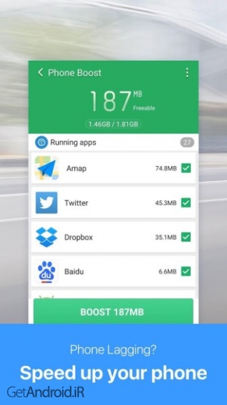 - تقویت كننده ی تلفن: تقویت بازیها و برنامه ها، آزاد كردن فضای حافظه(RAM)، سرعت بخشیدن به دستگاه و صرفه جویی در مصرف باتری.