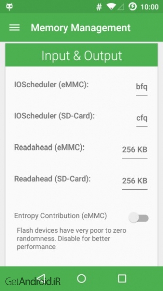 • بخش مدیریت حافظه برای استفاده از ترفند های مختلف مانند تغییر IOScheduler، swappiness، VFS Cache Pressure ، تغییر سهم آنتروپی.